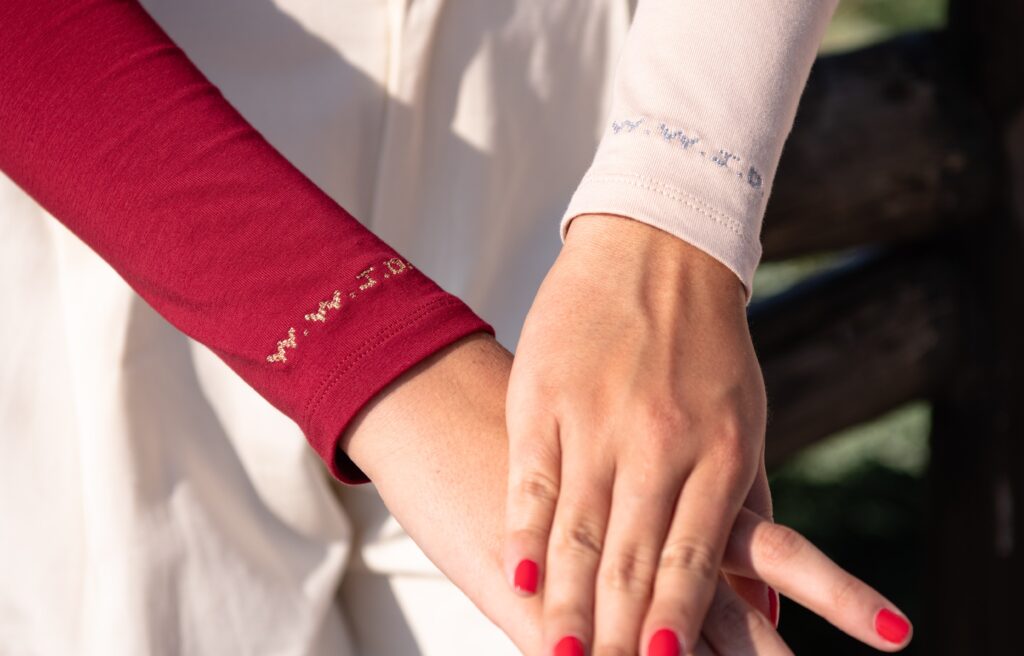 Weiches, dehnbares Material, das sich an deinen Körper anschmiegt und Dich wohlfühlen lässt. Dein Reminder für gute Entscheidungen ist silberfarben eingestickt auf Höhe des rechten Handgelenks. Erhältlich in den Größen S/M und M/L.